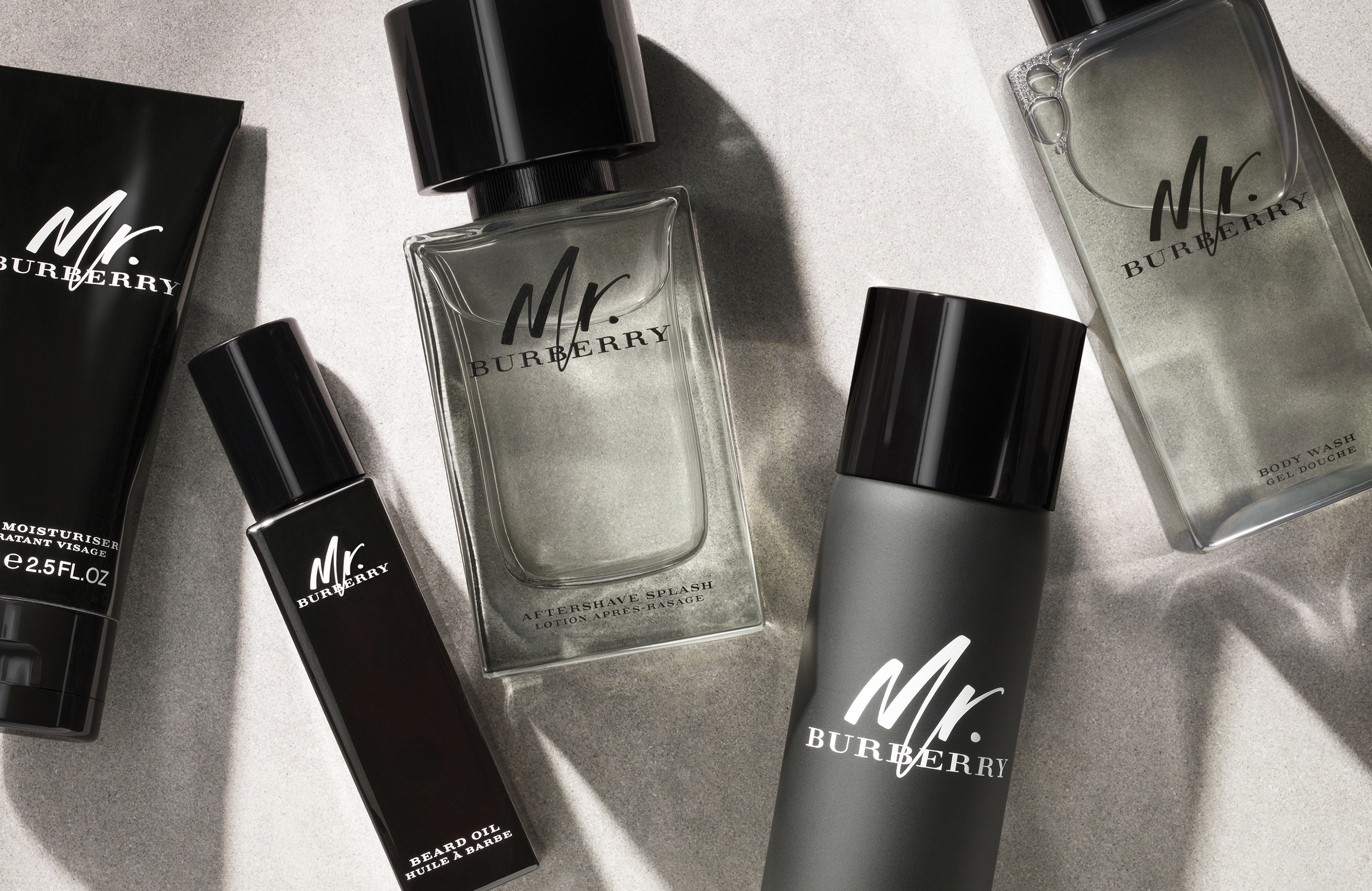 Εμπνευσμένο από την μαύρη γκαμπαρντίνα σύμβολο του Όικου Burberry και από την πόλη του Λονδίνου, το Mr. Burberry αιχμαλωτίζει την πεμπτουσία του Λονδίνου, μιας πόλης έντονων αντιθέσεων, όπου το παραδοσιακό συνδυάζεται με το τολμηρό και το κομψό δεν είναι ποτέ απόλυτα αθώο.